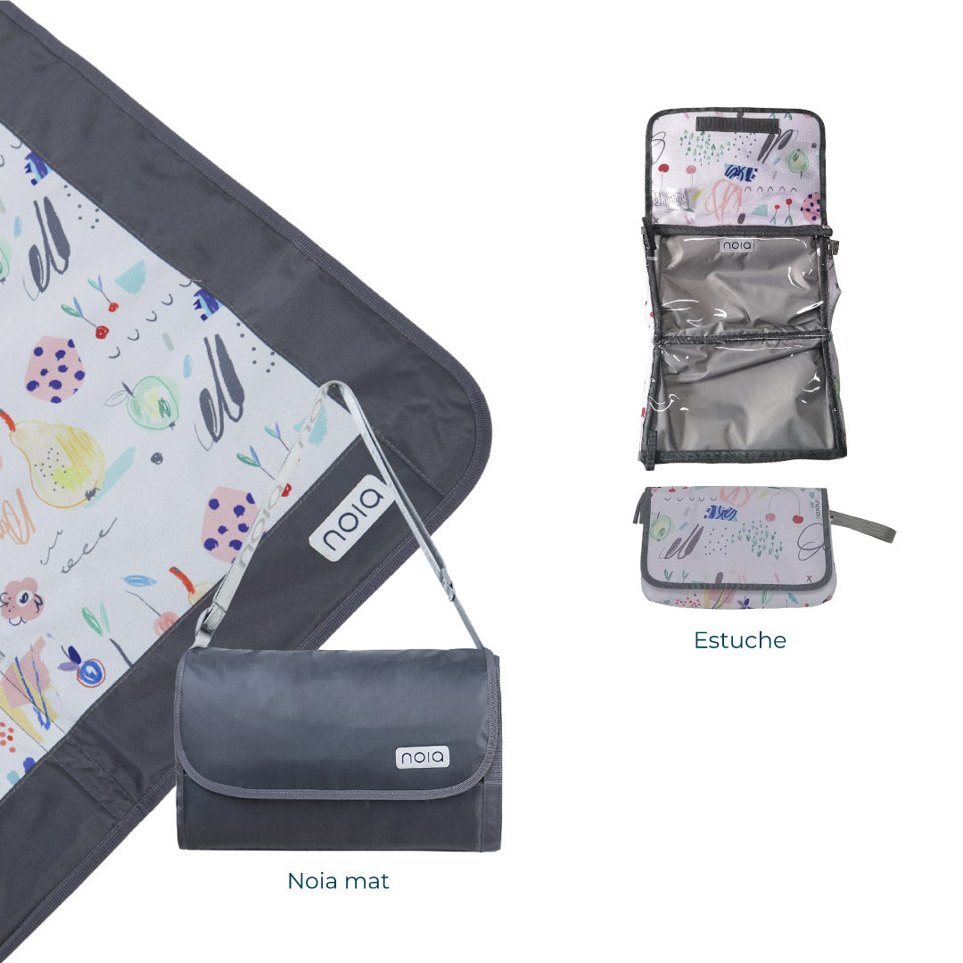 El noia mat es una manta impermeable que puede ser usada para exteriores, como el parque, la playa, un picnic o incluso para estar en casa. Está diseñada para ser transportada fácilmente y se puede utilizar sobre superficies húmedas sin problemas.