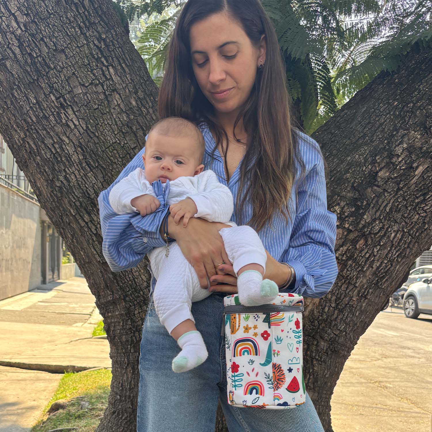 - Práctico y cómodo de cargar: su asa lateral con clip ajustable te permite engancharlo al cochecito, pañalera o bolso según el tamaño del asa o estructura. Siempre accesible, donde lo necesites.